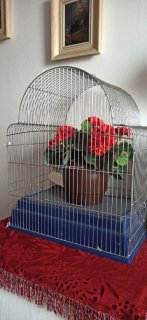 Prodám dvě klece pro andulky ( 44 x 51 x 28 ). Plus veškeré vybavení ve skle, nerezu, dřevo. Pítka, krmítka, houpačky, žebříčky.